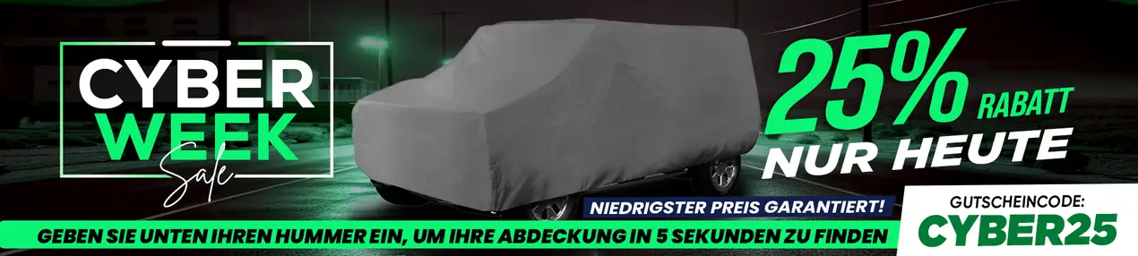 Machen Sie sich Sorgen um den Schutz Ihres Hummer? Unsere Hummer Abdeckungen wurden sorgfältig entwickelt, um die beste Qualität für Ihr Fahrzeug zu gewährleisten. Wir haben verschiedene Modelle, je nach Ihren Bedürfnissen, von Innen- bis Außenbereich, von Polypropylen bis Satin, und mehr! Bei Fragen können Sie uns über den Chat erreichen.